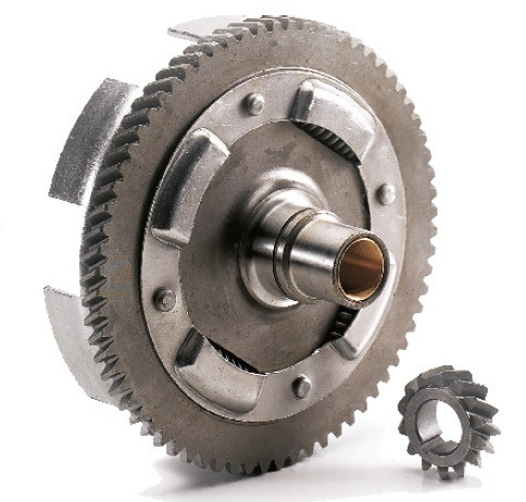 Basket + primary gear sprocket (Z63-22). Helicoidal teeth with shock absorber
